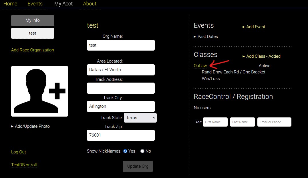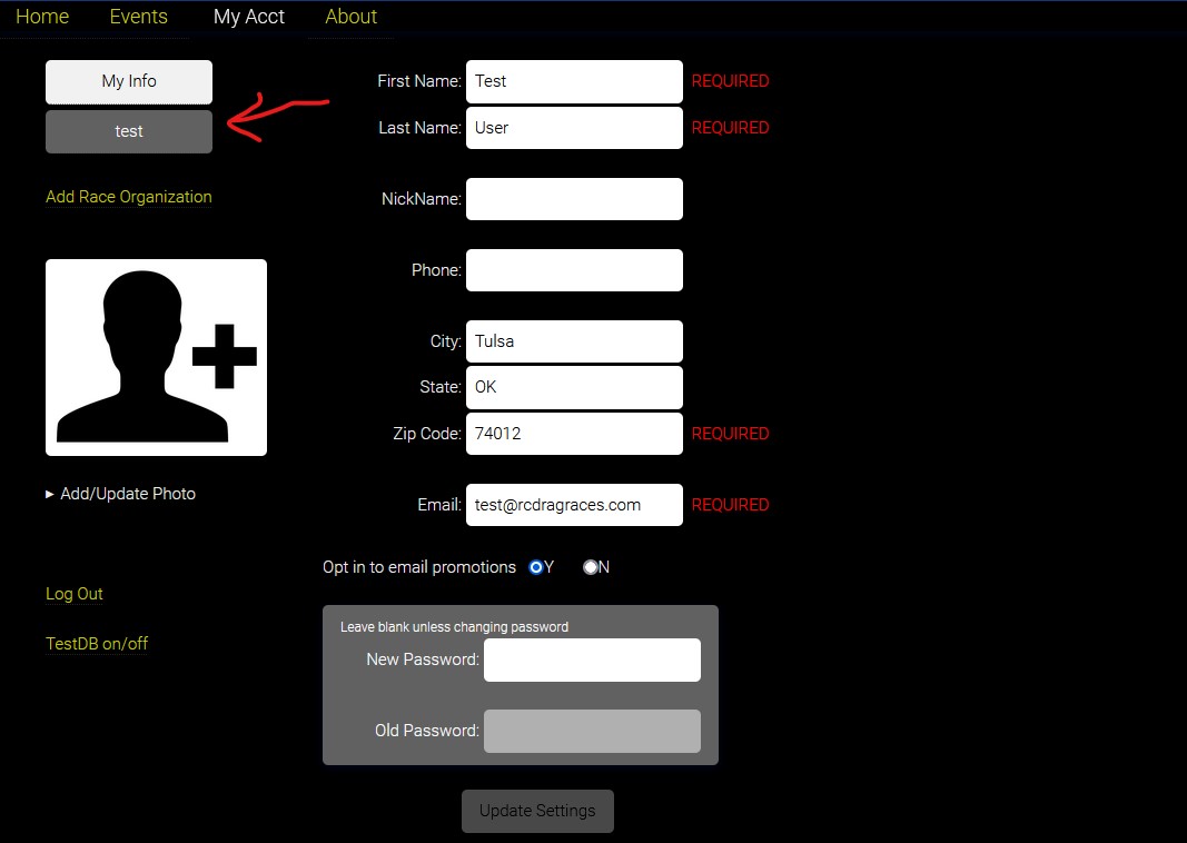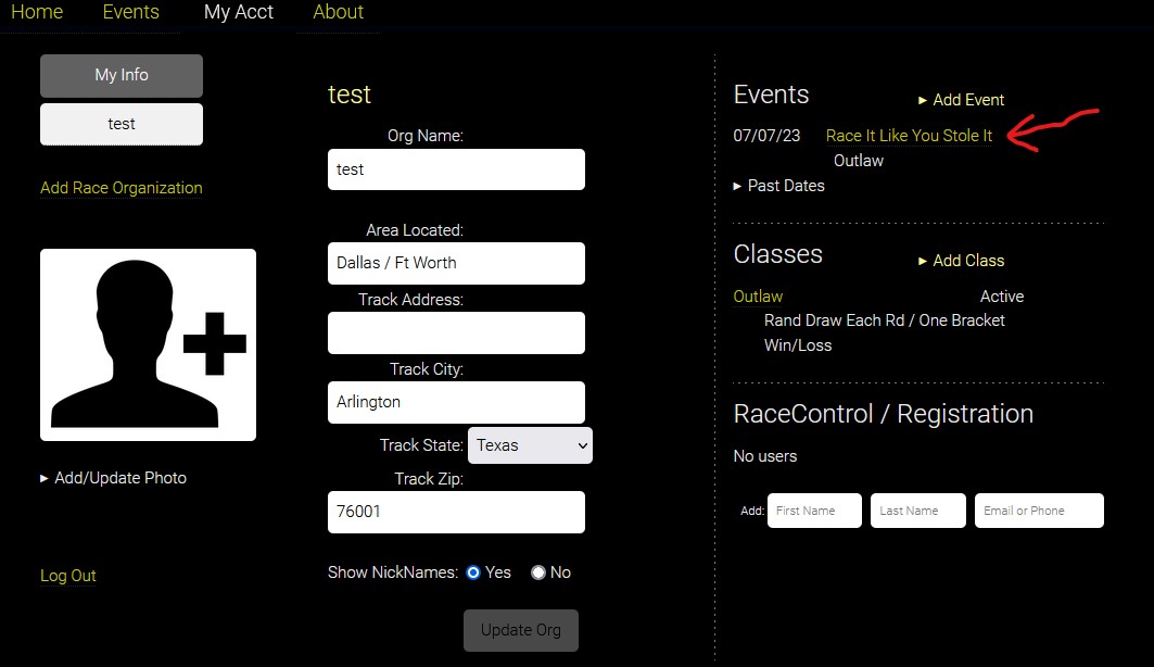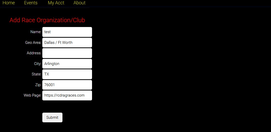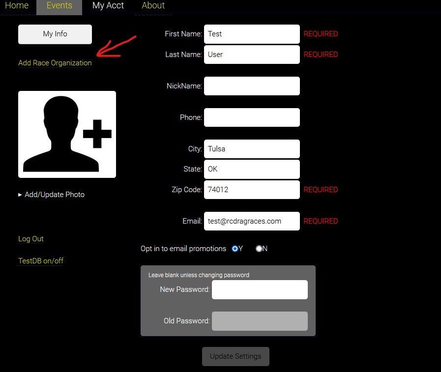1. Under the My Acct tab, click "Add Race Organization"